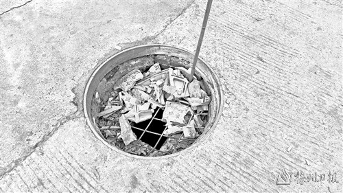 2月12日,记者来到梅县区府前大道客家新世界商业广场门口看到,涉事窨井的井盖已经被压得粉碎,井内只留下了一些钢筋和井盖碎块。为了防止意外再次发生,窨井已经被人放置了竹竿,竹竿上面绑了一个红色塑料袋,起提醒作用。