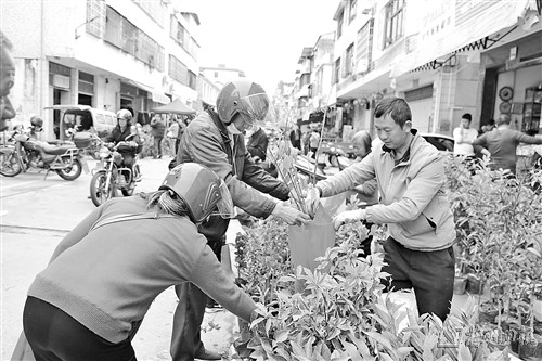 在长田集贸市场可以看到,柑、桔、橙、李、柚、茶树、桂花等各种苗木摆满了街道两侧,前来选购幼苗的市民朋友一边精心挑选苗木,一边询问种植管护方法,购销市场呈现两旺景象。长田村民丘女士房屋后面闲置地多,“听说大果金桔是新品种,口感不错,特地过来买几株回去种,既可以观赏还可以食用。”“每年都来这里卖,总体销量不错。”苗木公司负责人古先生告诉记者,每年春节他都会来到各个市场销售幼苗,今年销量大的主要有柑、橙、李、柚还有大果金桔等,所卖的幼苗单株价格在几元到几十元不等,销量可观。