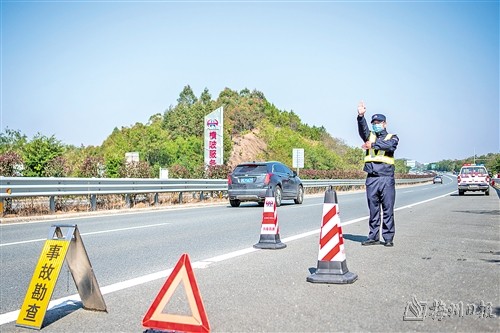 今年,梅州公安积极落实高速公路交通安全防控“四个一”体系要求,根据划定的高速公路“1、3、5分钟”快速反应点段和“15、30分钟”高效处置区,分类分级加强驻点警力前置和巡查管控力度。在联勤联动机制下,各部门加强协同处置,第一时间发现交通警情,综合采取远端提示、近段疏导、分流绕行等措施,均衡路网流量,缓解交通拥堵。