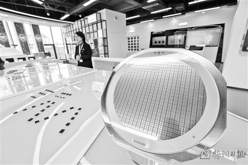 江苏宏微科技股份有限公司工作人员在介绍产品(2月15日摄)。该公司生产的电力半导体器件,广泛应用于工业控制、家用电器、电动汽车、新能源领域。