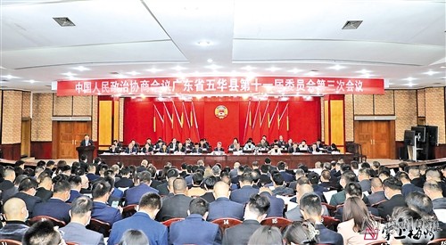 本报讯 2月14日至15日,中国人民政治协商会议广东省五华县第十一届委员会第三次会议,在县党政大楼大会堂召开。县委书记朱少辉,县委副书记、县长丘炀,县人大常委会主任钟光振等到会祝贺;县政协主席詹庆东作县政协常委会工作报告,县政协副主席胡高云作提案工作报告。本次大会应到委员382人,实到333人,符合政协章程规定。