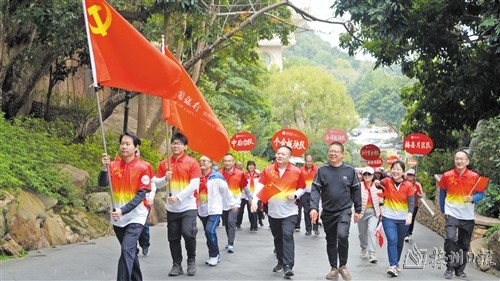 活动途经客天下望月台、客家小镇等地点,徒步路线全长约5公里。该行员工们积极参与,各行部分别组成10支队伍,早早便来到出发地集合,运动热情高涨。大家在进行热身运动后,随着发令声响,徒步正式开始。大家一起迈着矫健的步伐,阔步前行,愉快地畅谈着工作和生活。一路上员工们精神抖擞,脸上洋溢着欢乐的笑容(如图,侯志文摄)。