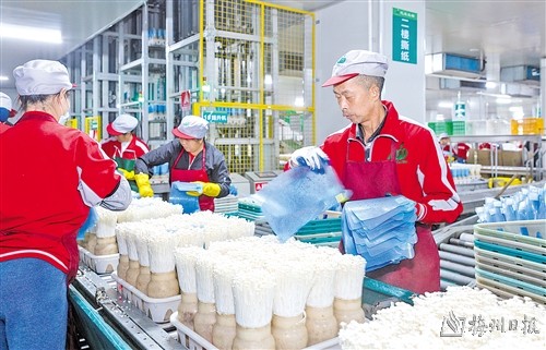 为更好地做强丰顺县特色蔬菜产业园、丰富产业链配套和振兴乡村经济,广东代米生物科技有限公司计划在今年启动三期项目建设,项目规划用地120多亩,计划总投资5.3亿元,引进具有行业先进水平的食用菌自动化生产设备一批及光伏发电设施一套,进行农光互联,用于开拓鹿茸菇、海鲜菇等新产品及产品深加工等。“项目建设完成后预计年产食用菌5万吨,预计产值3.8亿元,新增就业岗位650个,带动周边农户近千户,为丰顺县振兴乡村经济、高质量发展添砖加瓦。”该公司常务副总经理徐靖权说。