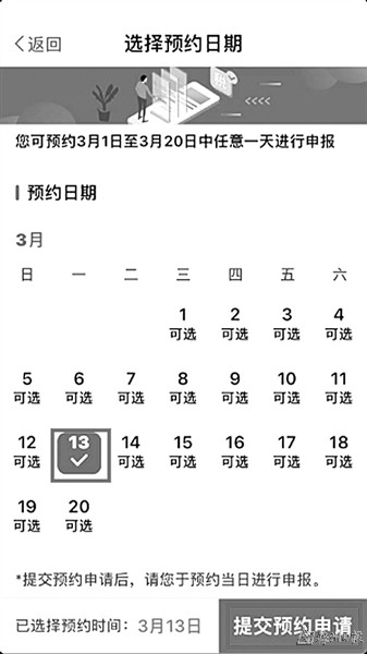 答:3月1日以后直到3月20日,纳税人仍然可以通过手机个税APP预约,选择未约满的任意日期预约确认即可。当然,纳税人也可以不预约,3月21日后直接登录手机个税APP或网站办理汇算。