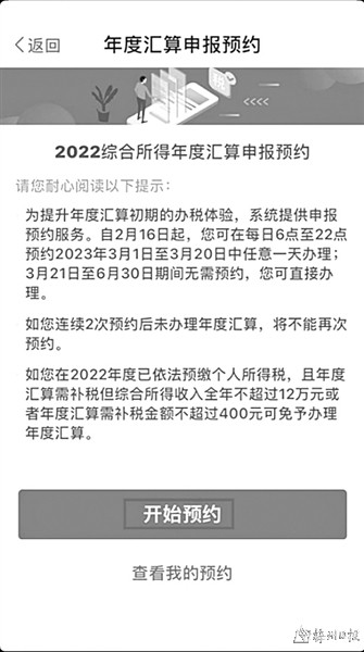 有在3月1日-20日期间办税需求的纳税人,可在2月16日 (含) 后,通过手机个人所得税APP及网站预约办理时间,并按照预约时间办理年度汇算。3月21日至6月30日,无需预约、随时办理。