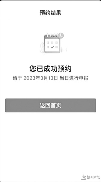 ③提交成功后,系统显示“您的预约提交成功”页面,即可在预约日期当天办理2022年度汇算申报。此外,还可以在手机个人所得税APP首页年度汇算专题栏查看预约情况。