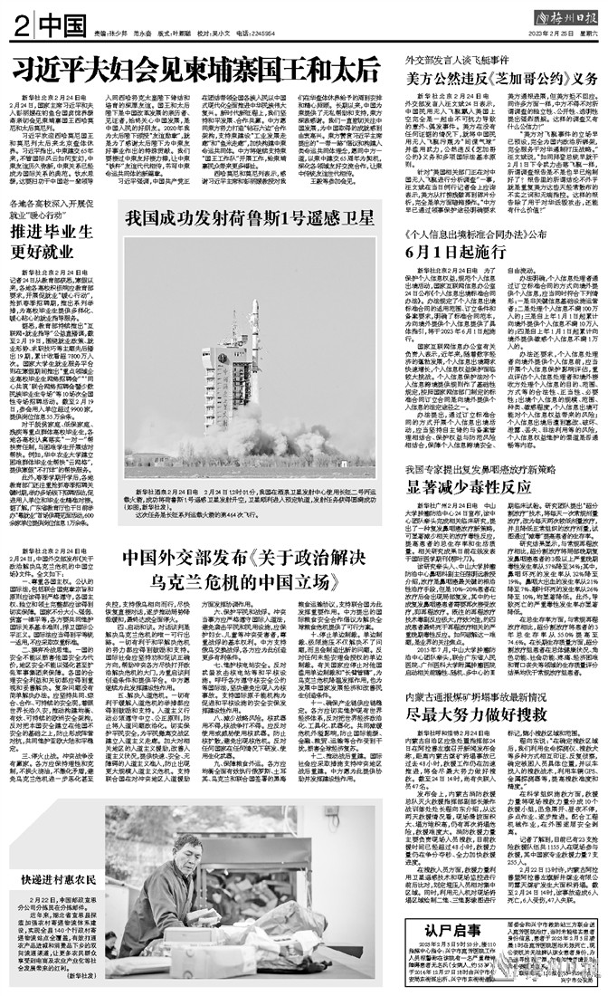 2月24日,中国外交部发布《关于政治解决乌克兰危机的中国立场》文件。全文如下: