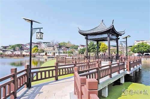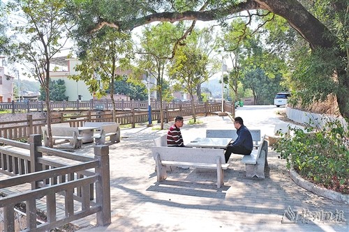 春日时分,城北镇古洲村觉堂片的炮仗花开得正艳,村民们或悠闲散步、或唱歌跳舞,尽享美丽乡村建设带来的美好生活。古洲村党委书记黄国海指着眼前占地30亩的池塘告诉记者,在对口帮扶资金支持下,村里增设了池塘围栏、太阳能路灯,并新建凉亭、休闲长廊、公共卫生间等设施,村容村貌实现美丽蝶变。在古洲村居住已有40多年的村民王芬琼对此也竖起大拇指:“普通池塘变身景观塘,让我们有了休闲娱乐的好去处,每天都有很多村民在这唱山歌、跳广场舞,非常热闹。”