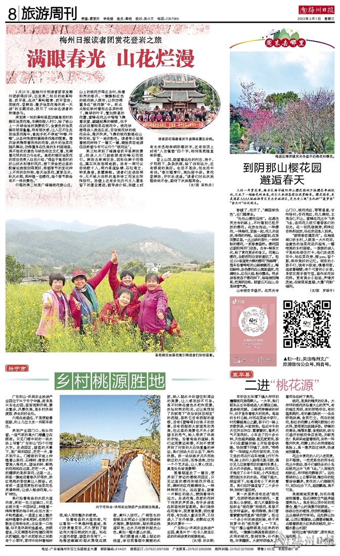 又到一年赏花季,梅县区雁洋镇阴那山樱花园的万株樱花争相绽放,汇成了一幅粉色的画卷,吸引大批游客前往观赏踏青。樱花园旁,更是国家AAAA级旅游景区灵光寺旅游区,灵光寺三绝“生死树”“菠萝顶”“顶无叶”远近闻名。
