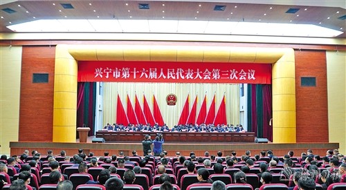 本报讯 (记者陈思杰 通讯员李宗龙) 2月23日、24日,兴宁市第十六届人大三次会议在兴宁会展中心顺利召开(如图,陈思杰摄)。兴宁市委书记宋才华,兴宁市委副书记、市长洪国华,兴宁市人大常委会主任邓强,兴宁市政协主席陈日新等出席大会。