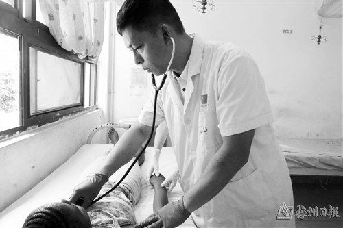 2月27日,在位于塞拉利昂首都弗里敦市郊的塞拉利昂-中国友好医院,一名中国医疗队医生为患者检查身体。