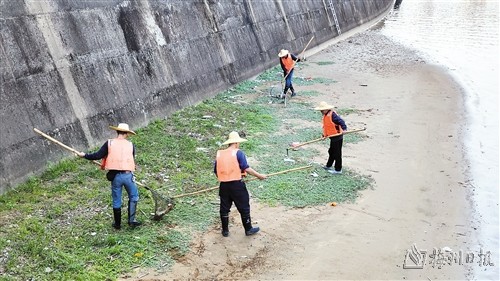 随后,记者将这一情况反映给了梅江河保洁队,相关工作人员随即驾船来到上述两处滩涂,将死鱼等漂浮物清理干净。据相关工作人员介绍,梅江河保洁队每天都会进行两次巡查,打捞漂浮物。近段时间,工作人员在清理漂浮物过程中发现,除了打捞到了垃圾、杂草外,还有不少死鱼。由于漂浮物容易聚到亲水平台附近,给打捞带来了一定的困难。接下来,梅江河保洁队将加大水面漂浮物打捞和巡查力度,确保不留卫生死角。