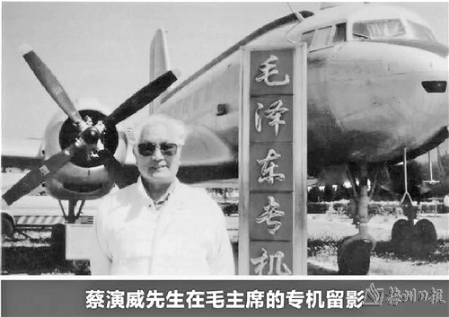 蔡演威给毛泽东主席开专机有30多次,是毛泽东三个专机长中开过最多次、时间最长、信任度最高的一位。1957、1958年毛泽东多次乘坐蔡演威驾驶的飞机,到各省考察。
