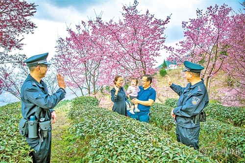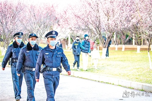 在这个春和景明的时节,循着赏花踏青市民的足迹,梅州公安民警用脚步丈量着这片土地。一个个走进群众的“藏蓝”身影,成了万花丛中的一抹别样景色,共绘一幅春耕生产、百姓和谐、社会安定的“春景图”。