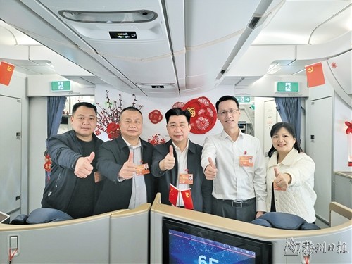 本报讯 (记者林德培)十四届全国人大一次会议将于3月5日召开。昨日上午,带着梅州人民的热切期盼,我市5名全国人大代表王晖、张晓、邹锦开、叶继联、张春梅与其他住粤全国人大代表一道,在广州白云国际机场登机飞赴北京参会。