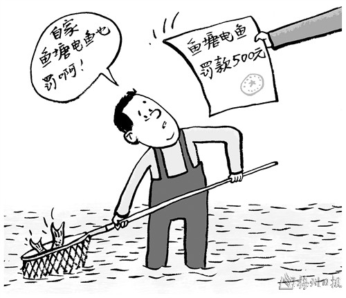 近日,四川宜宾一男子在自家鱼塘电鱼被警方传唤,并被处以500元罚款。不少网友不理解,“自家鱼塘,自己处理,有什么问题?”当地公安回应称,处罚原因在于该男子非法使用电网设备。不过事情很快有了反转,警方再发通告称,经市区两级相关部门核查会审,认定该起案件办理存在适用法律不当问题,已撤销对当事人的处罚决定,并将罚款全额退还。 王铎/图