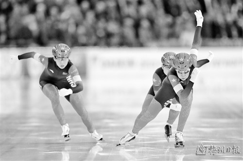 女子短距离团体追逐比赛中,加拿大队以1分26秒29的成绩夺冠,美国队以1分26秒58的成绩获得亚军。