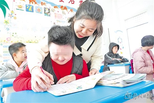 “最难的是刚开始孩子们不接受你,尤其是患有孤独症的孩子,他们一直活在自己的世界里,要让他们接受你对他的教育和康复,就得取得学生们的信赖,接下来的工作才得以开展。”江美玲说,她时常向老教师“取经”,学习如何拉近与学生的距离,并自己摸索出了一些切实可行的办法,比如:孩子们上课不听讲,她就买些小糖果等零食,通过奖励措施,鼓励孩子们认真听讲;孩子情绪波动大,她就陪情绪失控的孩子去宣泄室发泄,慢慢安抚其情绪;孩子对抽象的事物理解不到位,她就用更明确的指令告诉他们什么事情该做什么不该做……总之,日常生活中对学生无微不至的关心、照顾,学习上循循善诱,让她和学生之间的关系逐渐变得亲近。