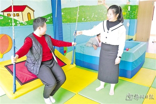 上大学期间,学习小学教育专业的江美玲偶然在网上看到了梅县区残联招聘实习康复训练教师的公告,她抱着学习的心态去应聘,并因此获得了第一次接触特殊教育的机会。
