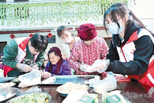 活动中,学生志愿者与敬老院老人们坐在一起拉家常,倾听老人们讲故事,关心老人们的饮食起居和身体健康状况,让老人们感受爱的温暖。志愿者们还有序分工,有的挽起袖子包饺子,有的为老人们弹吉他、唱山歌,现场其乐融融。