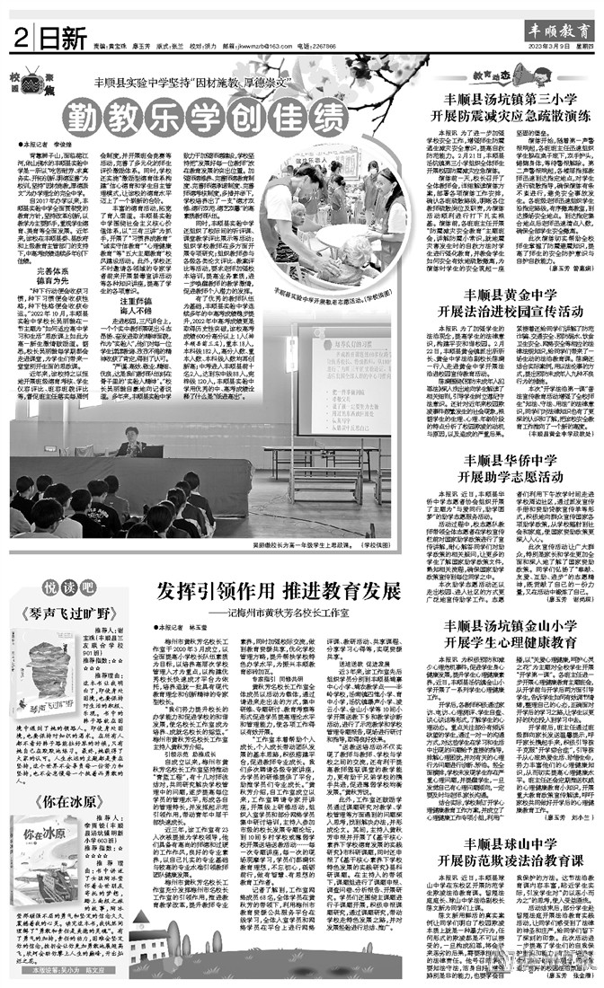 梅州市黄秋芳名校长工作室充分发挥梅州市名校长工作室的引领作用,推进教育教学改革,提升教师专业素养,同时加强校际交流,做到教育资源共享,优化学校管理方略,提升帮扶学校特色办学水平,为振兴丰顺教育添砖加瓦。