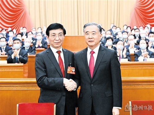 选举结果宣读前,十三届全国政协主席汪洋来到大会会场,对即将产生的新一届政协全国委员会常务委员会表示祝贺。当会议主持人宣布王沪宁当选政协第十四届全国委员会主席后,汪洋起立祝贺,与王沪宁热烈握手,全场响起长时间的掌声。