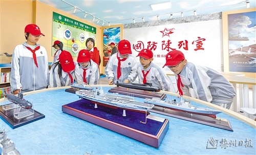 还未进入该校,只见学校长廊里人头攒动。原来,这是国防教育文化长廊,周五下午,学生们在老师引领下,听着小小讲解员的国防长廊故事,进一步了解梅州苏区红色历史。“我们利用校园内外的围墙建设‘国防长廊’,长廊里既有全军十大英模的故事,也有梅州苏区本土故事,既有军事知识普及,也有趣闻轶事,让学生们在耳濡目染中提升国防教育理念。”仁居中心小学校长马英说,为更好开展国防教育系列活动,该校还串联起学校内国防教育阵地、红四军纪念馆,打造国防教育学习短途研学线路,着力培养一批小小解说员,用学生们喜闻乐见的“学生话”讲述好这些故事,提升传播效果。为让学生更好接受国防教育,在驻镇帮镇扶村工作队支持下,学校还新建国防陈列室(图书阅览室),不仅配备各种书籍,而且还有各式装备模型,让学生们通过书籍与实物了解国防、认知国防。