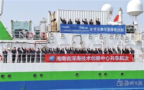 图为“探索一号”科考船携“奋斗者”号全海深载人潜水器抵达三亚。