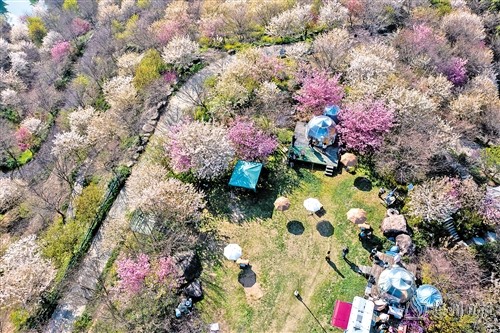 近日,浙江省杭州市余杭区瓶窑镇塘埠村的杭州樱花园进入盛花期,吸引众多游客前来赏樱游玩。余杭区瓶窑镇发挥乡村生态资源优势,打造“赏花经济”特色品牌,助力乡村振兴。(新华社发)