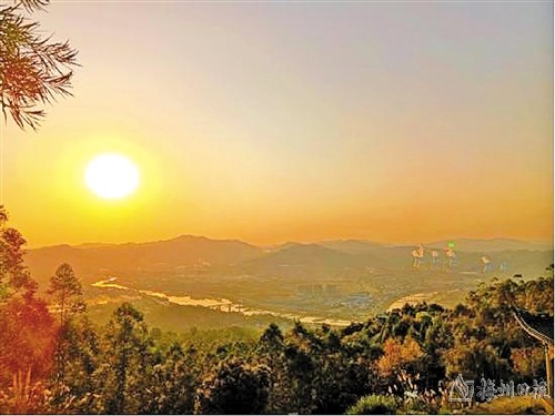 万灵寺坐落在一个山顶上,四周林木葱葱,环境清幽,鸟语花香。据悉,万灵寺坐落于梅县区丙村镇称子印,始建于明朝,历经600多年,它见证了时代的变迁。如今寺庙年代已久,损毁严重,山顶在建一个观景亭。我们怀着好奇的心沿着石子路往上走,只见山顶上搭建了一个木棚子,四周还没完工,爬上棚子,向远处眺望,丙村镇及周边一览无遗,群山连绵起伏,江水滔滔,碧波流长。此时,太阳正慢慢地往下走,我们也赶紧从山顶下来,到已建好观景亭中。亭里建了一个小木屋,摆有木凳木桌,供游人休憩,栏杆四周还养着多种盆栽植物及可爱的多肉,让亭子增添了几分诗情画意。