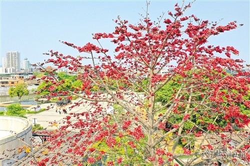 在江南路、客家公园、归读公园等地,一株株挺拔的木棉树分外夺目。红艳艳的木棉花挂满枝头,如同一团团火焰在枝头燃烧、跳跃,在蓝天白云的映衬下,更显灿烂热烈、生机勃勃(如右图,钟小丰摄)。不少游客、路人纷纷驻足观赏、拍照,尽享美丽春色。
