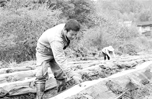 3月12日,光泽县寨里镇官桥村村民在采用“水稻+经济作物”轮作模式的复耕田里整理种植的经济作物。