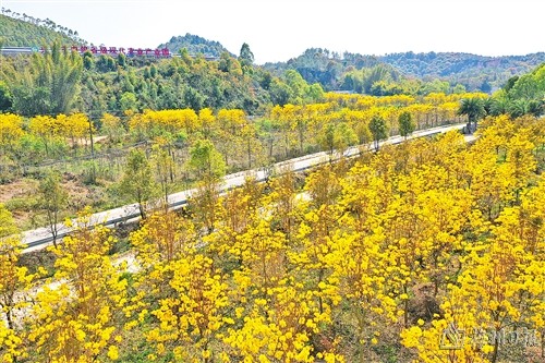阳春三月,春暖花开。连日来,兴宁市各地黄花风铃木烂漫盛放,“金”艳了齐昌大地。