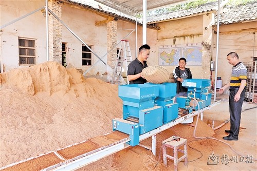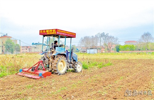 在宁新街道黄岭村,随着轰隆隆的机械声,一台花生播种机在田间来回行驶。起垄、施肥、播种、覆土、震压……随着平坦的土地上隆起一条条笔直的田垄,花生种子被播种到田里。梅州市浠涵家生态农业发展有限公司是一个以“公司+生产基地+电商”为经营模式的农业企业,该公司在黄岭村、水楼村流转近200亩旱地,打造花生种植基地,培育种植七彩花生等特色品种,并通过成熟的销售网络进行宣传推介,既解决了撂荒地的复耕,又促进了当地农民的就业增收,有力支持农业产业振兴发展。
