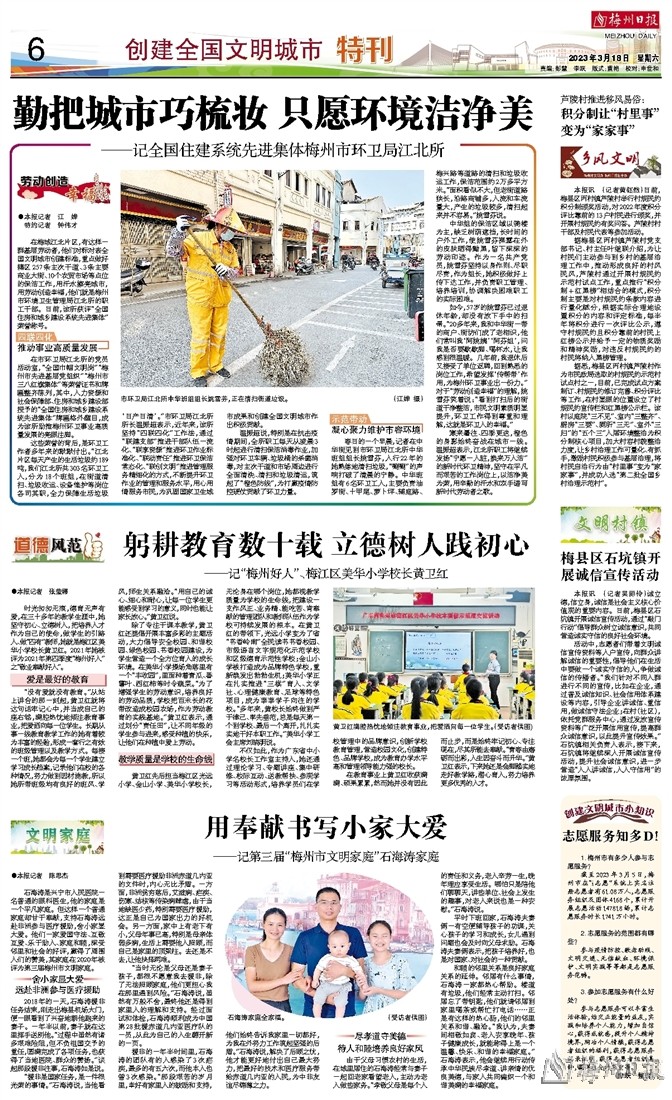 时光匆匆无痕,德育无声有爱,在三十多年的教学生涯中,她坚守初心、立德树人,把培养人才作为自己的使命,做学生的引路人、做“四有”教师,她就是梅江区美华小学校长黄卫红。2021年她被评为2021年第四季度“梅州好人”之“敬业奉献好人”。