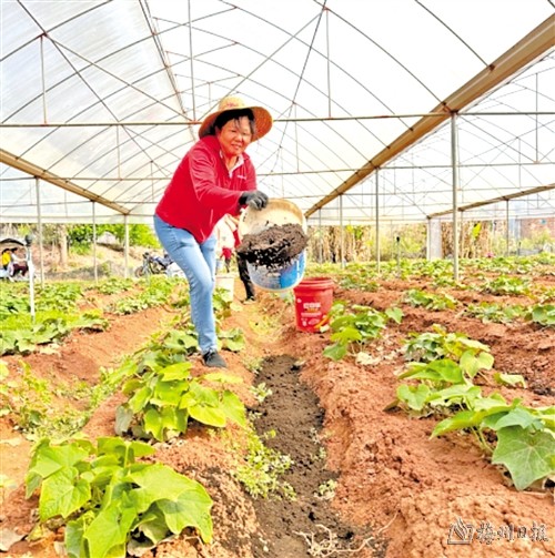 本报讯 在潭下镇百安村韭菜塘,有一片近200亩的精品蔬菜种植基地。正是春意盎然、阳光明媚之时,农户们正在大棚里忙碌,他们有的在给龙须菜施肥,有的在栽种夜兰花,忙得不亦乐乎。
