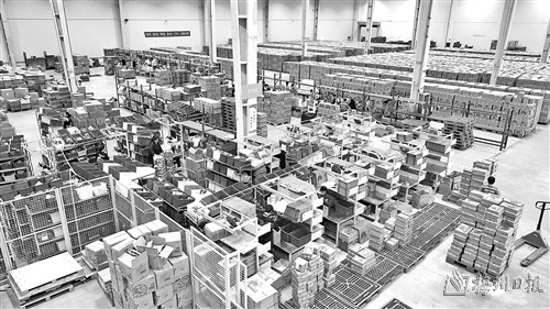 3月19日,在柳州市柳江区新兴工业园一家物流企业,工人在仓库里分拣物流快件。