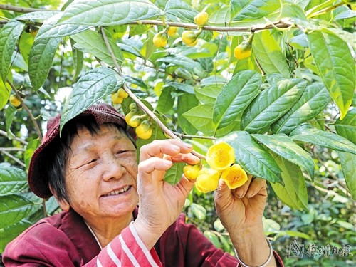 走进横西村金花茶种植基地,只见一片松树林下套种着金花茶,一朵朵金黄色的花耀眼夺目,花瓣有杯状的、壶状的或碗状的,村民们忙着采摘盛开的茶花(如右图,高讯摄)。