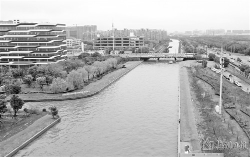 3月21日拍摄的位于洞泾港的松江新城绿环水脉建设现场(无人机照片)。