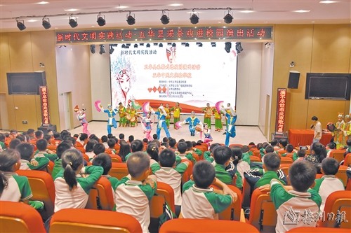 文艺创作来自于人民,也必定要惠及人民。多年来,五华坚持开展戏剧进校园、进社区、进企业、进景区、进革命老区活动,以及“非遗进校园演出”“戏曲进农村”“文化志愿者走基层惠民演出”“文化进万家活动”“五华提线木偶惠民云展播”等演出,每年演出400多场次。此外,五华把戏剧进校园和非遗传承教学进校园有机结合起来,也培养发现了一批好苗子。