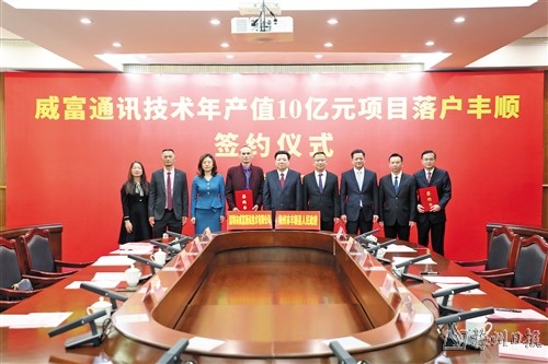 张志锋在致辞中表示,举行威富通讯技术年产值10亿元项目落户丰顺签约仪式,是深入学习贯彻习近平总书记关于高质量发展的重要论述,全面贯彻党的二十大和全国“两会”精神,认真落实全省、全市高质量发展大会部署,坚持发展第一要务、坚持工业强县、坚持制造业当家,推动丰顺苏区高质量振兴发展的具体行动和生动实践,充分表明头部企业进一步看好丰顺、青睐丰顺、投资丰顺的信心。