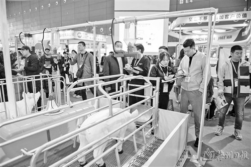 3月23日,在长沙国际会展中心,工作人员向观众介绍智慧猪场设备。