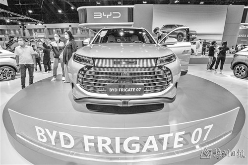 3月22日,观众在泰国曼谷国际车展上参观比亚迪护卫舰07汽车。