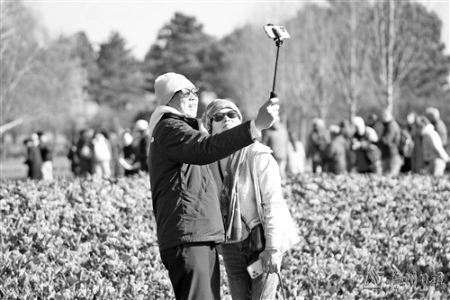 3月23日,游客在荷兰利瑟的库肯霍夫公园自拍。