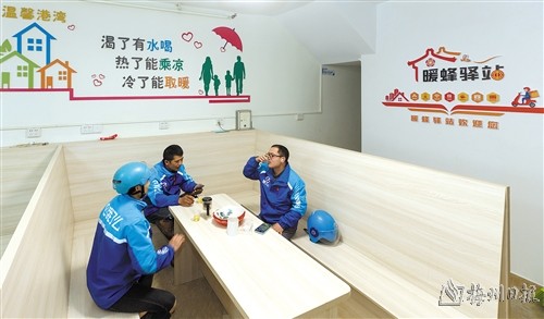 近年来,我市采取“驿站+”模式,组织部门和工会等单位通过整合党群服务中心、户外劳动者爱心驿站、爱心商家超市门店、架空层和集装箱等资源,打造了68个“暖蜂驿站”和4个“司机之家”,形成“15分钟暖蜂服务圈”。同时,探索建立“快递员-党员快递员-快递企业(经营网点、分拣中心)党组织-快递行业党委”诉求解决机制,积极开展关心关爱活动、评先评优活动,将温暖传递给奋斗在一线的新业态、新就业群体。