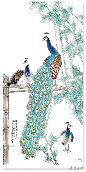 名辉作画题材广泛,尤以禽鸟及鱼类为最。其笔下的孔雀、公鸡、鲤鱼、荷花、木棉、荔枝等题材都无不神形兼备,栩栩如生地跃然于纸上。严谨的造型能力以及对点划笔法细节的考究,使得他的画面有一种难得的法度与考究。从他的作品中,可以看出他为人务实的性格和一丝不苟的工作态度。