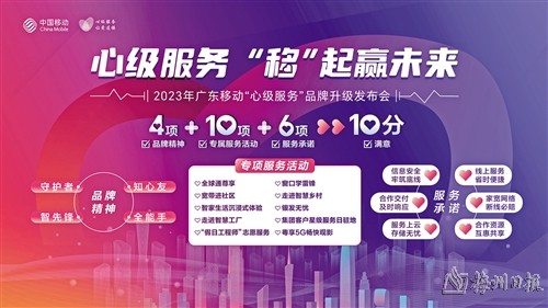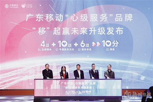 广东移动副总经理杨斌在发布会上表示,2022年,广东移动发布了“心级服务,让爱连接,‘移’起向未来”的服务品牌。今年,“移”起向未来升级为“移”起赢未来,并重磅发布四项品牌精神、十大专属服务活动、“六必达”服务承诺,这是广东移动新的历史起点。他表示,广东移动将通过“心级服务”积极打造同质化竞争形势下的差异化服务,做到客户服务“人无我有、人有我好、人好我多”,面向全客户、全产品、全生态,创造更大的服务价值。