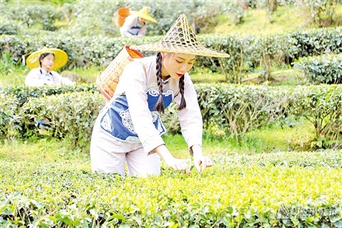 初春的茶园,千山翠绿,丛丛茶树如五线谱般延伸开来,各地茶企和茶农纷纷抢收“头盏好茶”。