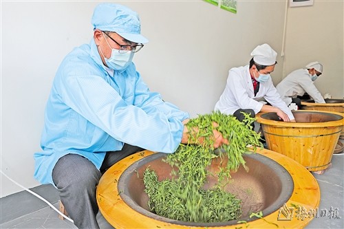 同样忙碌的还有位于西阳镇桃坪村的梅州市源自然农业发展有限公司茶园,茶场工人们正忙着晒青,为将嫩芽变成满杯的清香做足准备。负责人陈海珠说,该茶园自有基地500亩,3月中旬便进入春茶采摘期,第一批头春茶产量预计有1.5万斤,经过晾晒、杀青、揉捻、烤干、炒制、色选、筛选、复烤、包装等数十道工序,最终成为人们手中的一杯好茶。据介绍,源自然公司作为一家集茶叶种植、加工、销售、茶文化传播等功能于一体的省级重点农业龙头茶企,将以生态茶园建设为基础,结合乡村旅游,大力推动茶旅融合发展。