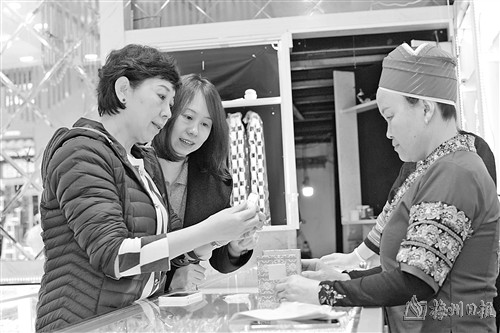 近日,游客在贵州省黔东南苗族侗族自治州黄平县谷陇镇银饰一条街一家银饰店选购饰品。